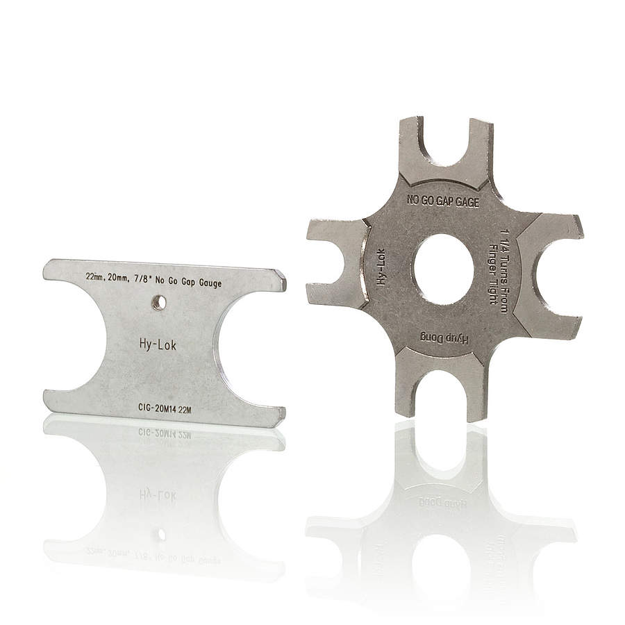 Für die Erstmontage von Hy-Lok Klemmringverschraubungen empfehlen wir die Verwendung von Prüflehren. Mit Hilfe einer Prüflehre lässt sich nach erfolgter Erstmontage über den Abstand zwischen Verschraubungskörper und Mutter überprüfen, ob die Mutter mit ausreichender Umdrehungszahl angezogen wurde.